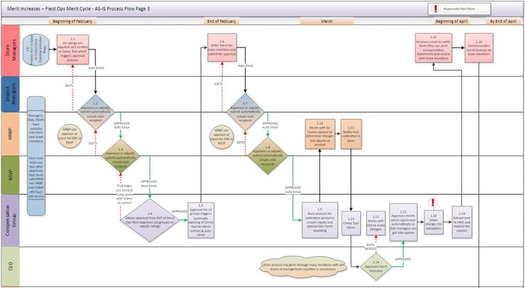 Swimlane diagram (or otherwise) to represent business functions and how these move between departments and tools