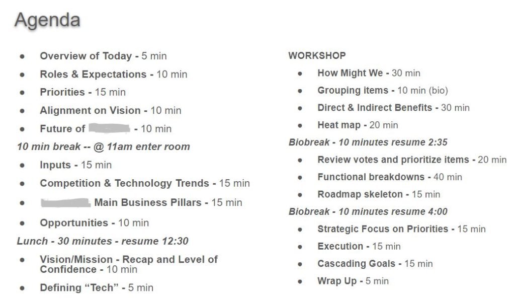 Strategy workshops clearly define the vision for the department or entire company. These include: