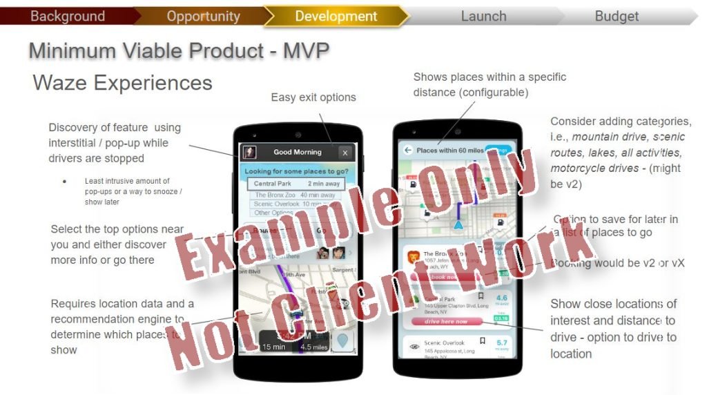 A 30k foot view of an initial MVP in order to iterate through what features might be needed for a v1, v2, and beyond.